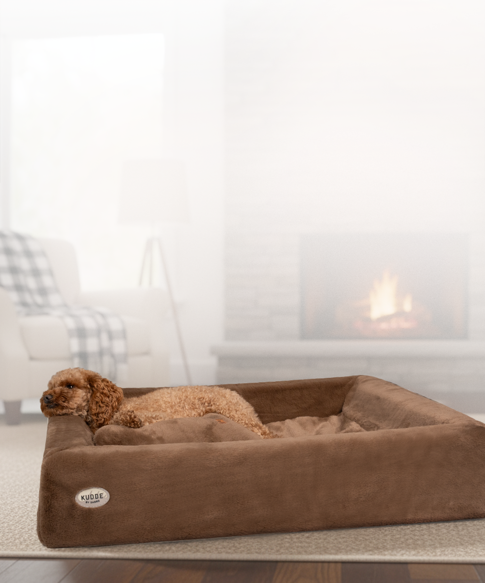 Das KUDDE Hundebett ist nicht nur langlebig und pflegeleicht, es hat auch einen formstabilen Kern aus viskoelastischem Schaumstoff. So schläft dein Hund natürlich und gesund.”