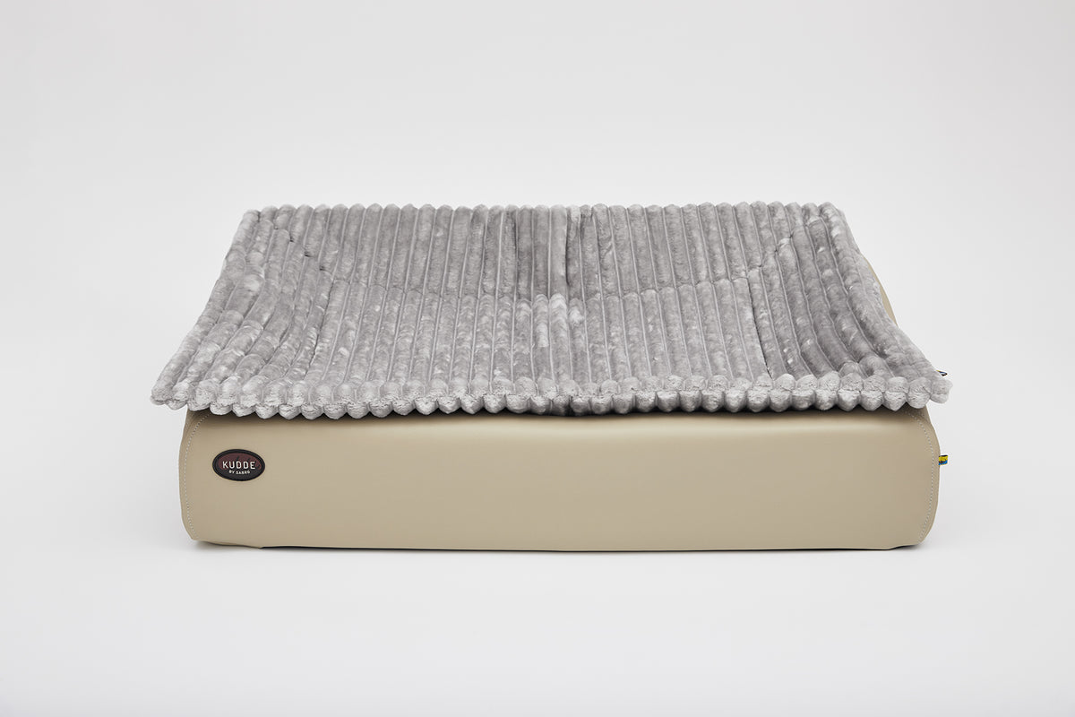 Seit 2018 sind alle KUDDE-Betten auch als "KUDDE To Go" erhältlich. Der Schaumstoffkern lässt sich mit handelsüblichen Vakuumbeuteln schnell vakuumieren und platzsparend transportieren. So kannst du das KUDDE problemlos im Auto oder auf Reisen mitnehmen – damit dein Hund auch auf Reisen ein vertrautes und bequemes Bettchen hat.